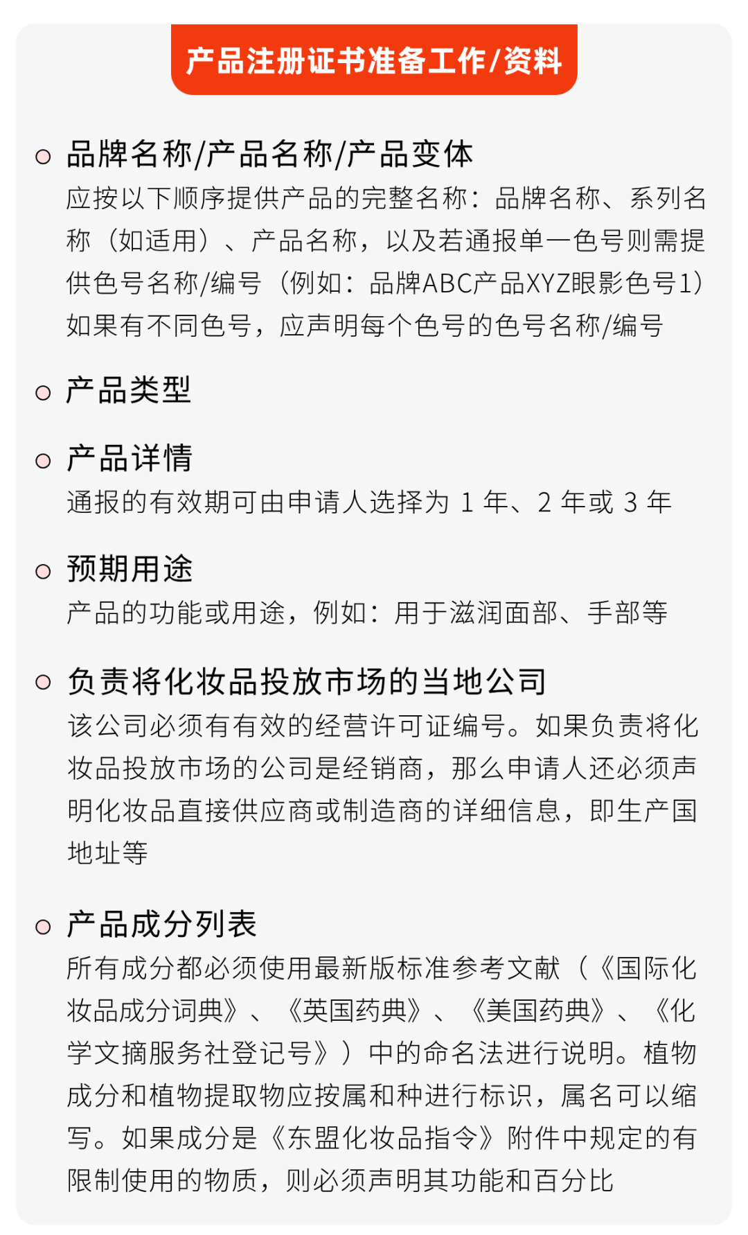 菲律宾化妆品监管遵循东盟化妆品指令等相关标准,根据东盟化妆品指令 B 部分第 2.1 条: