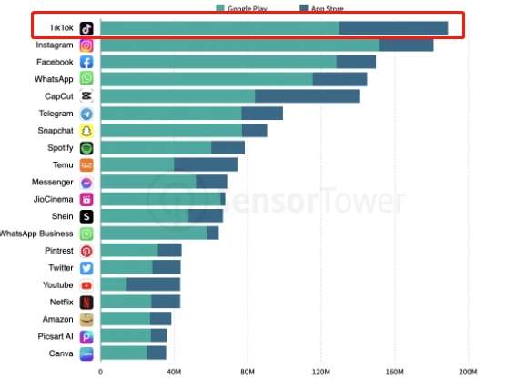 根据SensorTower发布的《2023年Q2全球移动应用下载报告》显示,TikTok再次成为全球下载量最高的应用程序,且创下了连续12个季度位居第一的纪录。