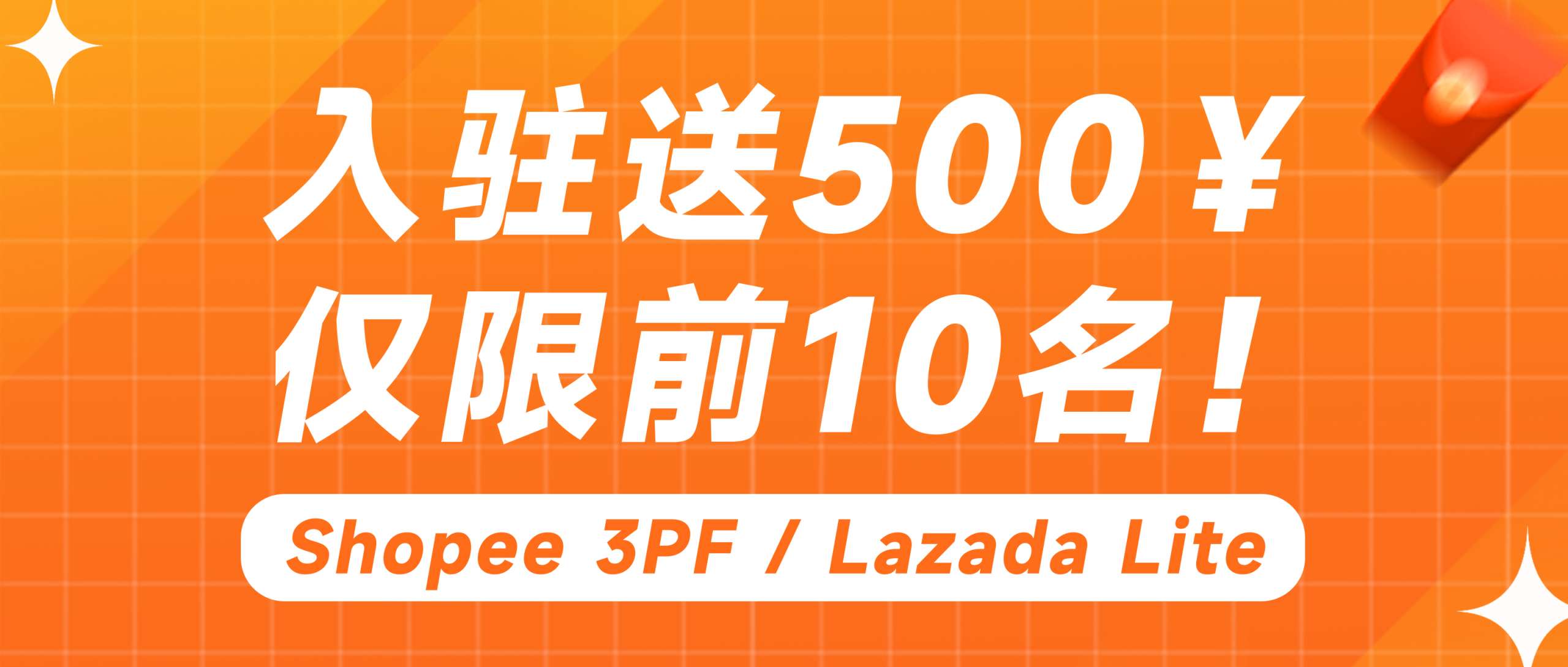 入驻Shopee 3PF或Lazada Lite仓即送500元现金,可用于AsiaECS头程+海外仓费用抵扣。